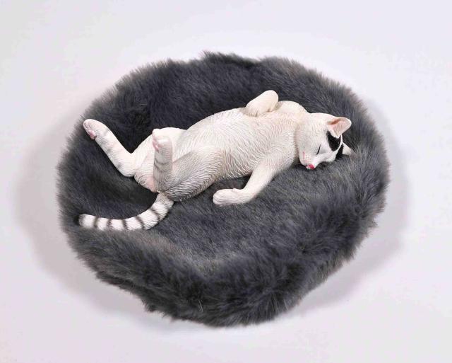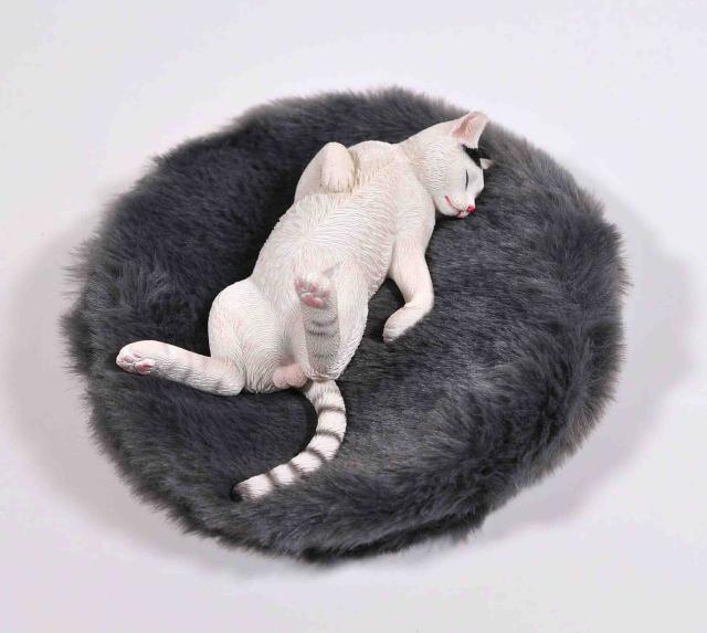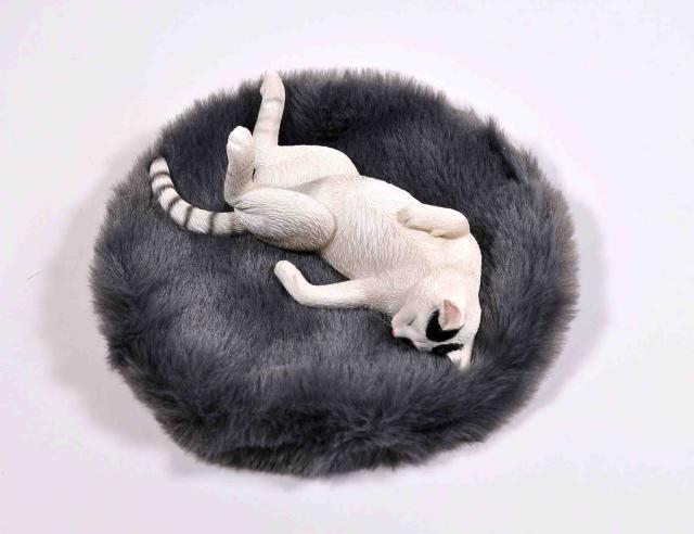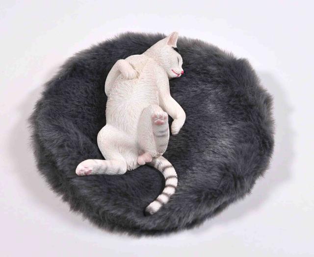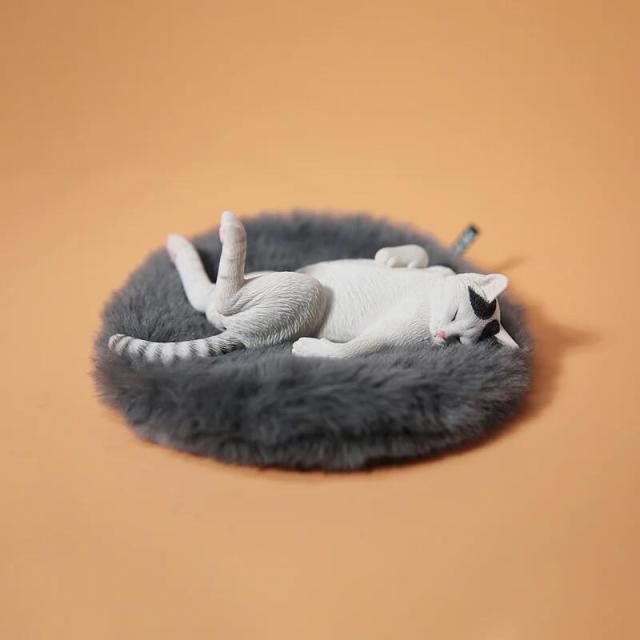 1/6サイズ クッションで眠る、白猫 リアルフィギュア ネコ動物彫像置物 ネコ好きプレゼント輸入品JXK-152C