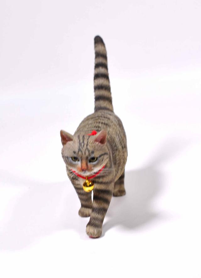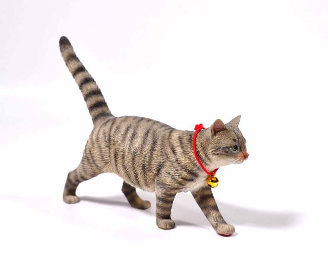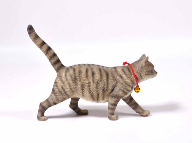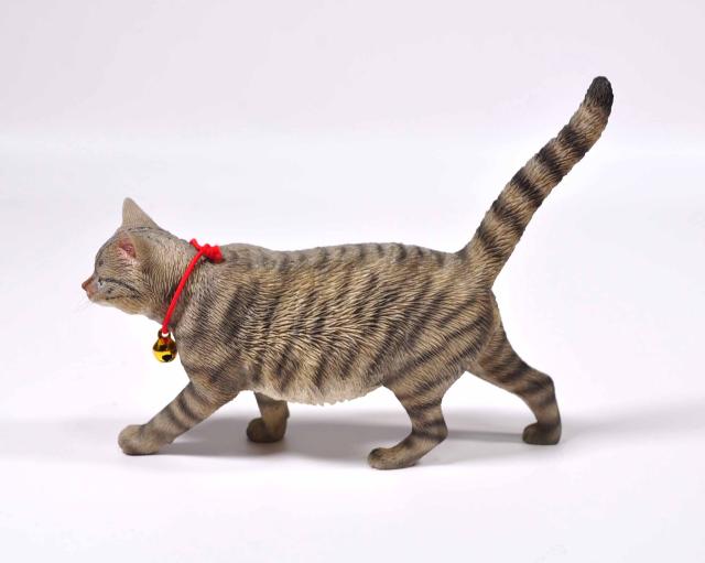 1/6サイズ 歩き回るサバトラ柄のリアル猫フィギュア動物彫像置物 ネコ好きプレゼント輸入品JXK-196A
