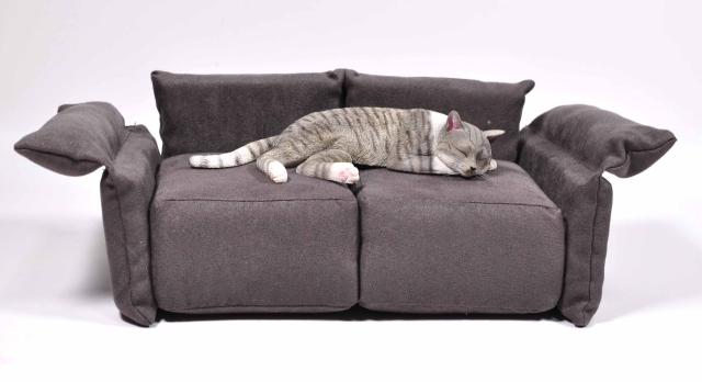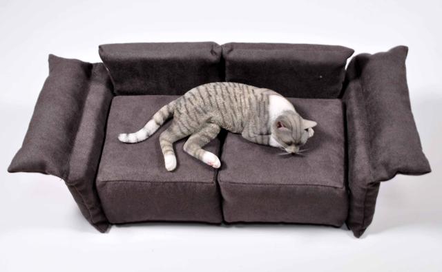 1/6 scale Mackerel tabby cat sleeping on a sofa, realistic figure, cat animal figurine,animal statue, cat lover's giftJXK-142A