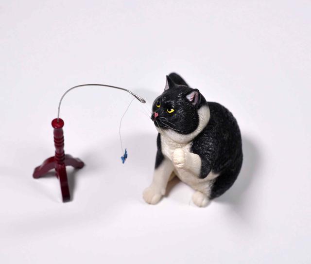 1/6 size Black and White British short hair that plays with a butterflycat Real figure Cat animal statue figurine cat lovers of gifts JXK-127C