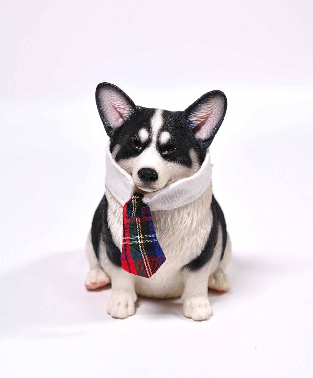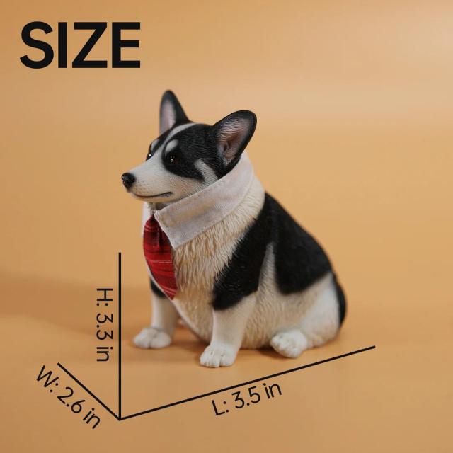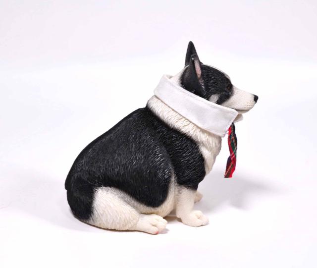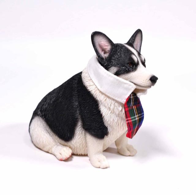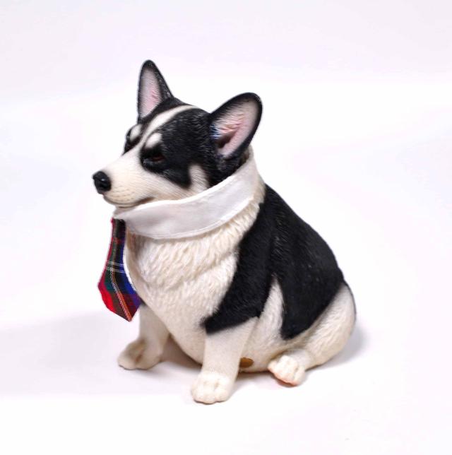 1/6サイズ 太っちょ ブラック&ホワイト色のウェルシュ・コーギー・ペンブローク犬リアルフィギュア犬動物彫像置物 イヌ好きプレゼント輸入品JXK-140B