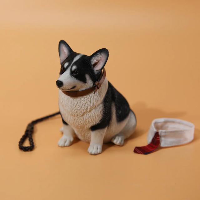 1/6サイズ太っちょ ブラック&ホワイト色のウェルシュ・コーギー・ペンブローク犬リアルフィギュア犬動物彫像置物イヌ好き輸入品JXK-140B