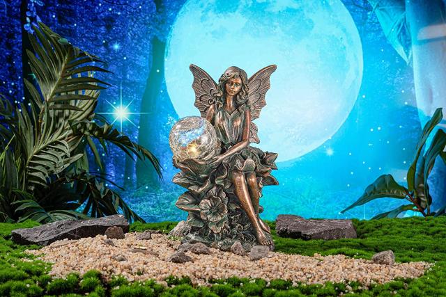 ブロンズの手作りの庭の妖精達は、暖かい光のクラックルボールで、家や庭で暖かく快適に感じさせます