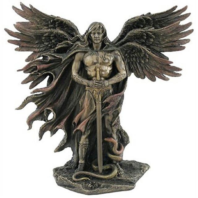 【Unicorn Studio WU75976A4 Guardian Angel Statue in 6 Winged with Sword and Serpent, 11-inch Cold Cast Bronze】