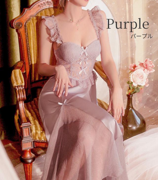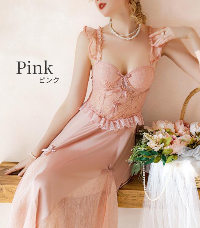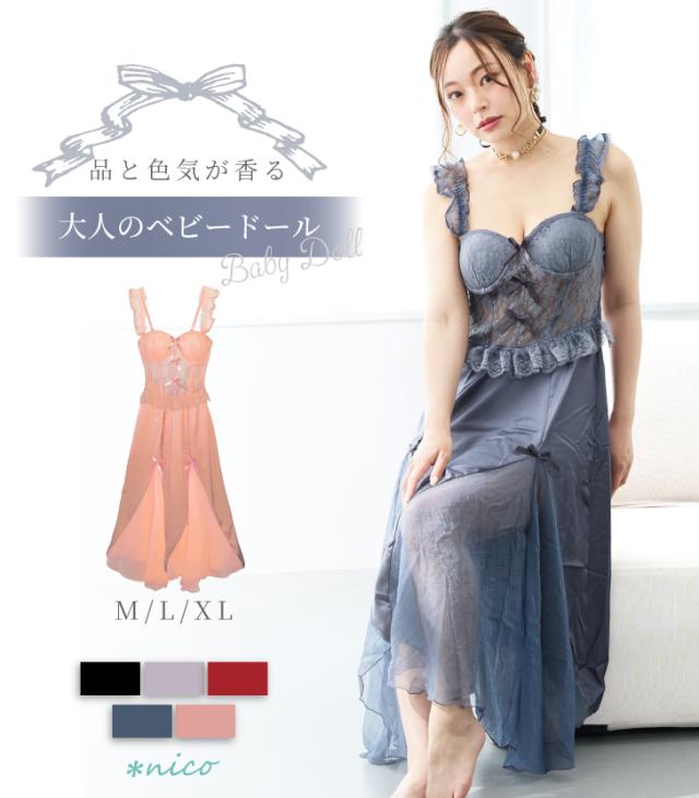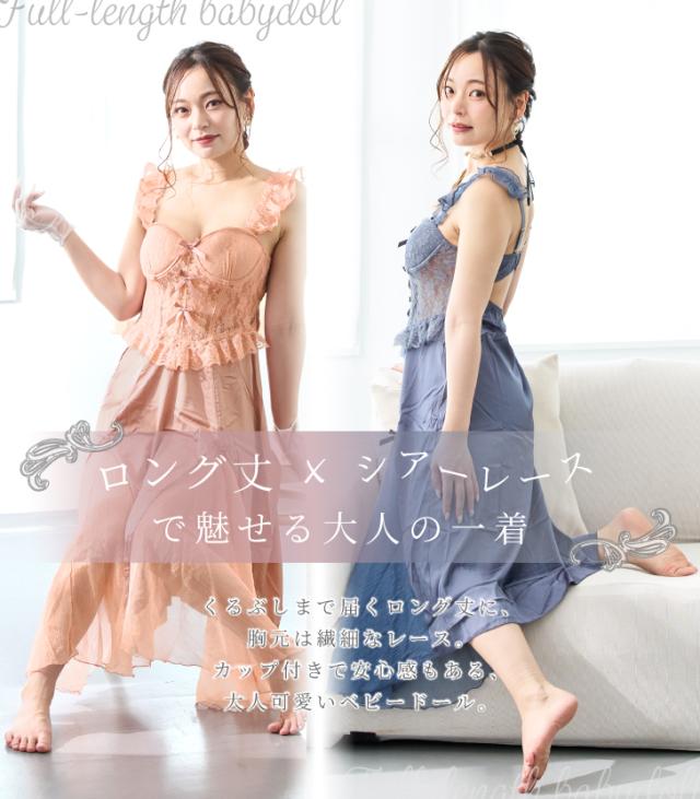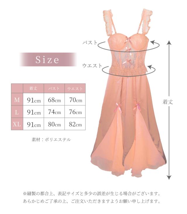 ベビードール ランジェリー レース 大人 下着 M-XL (J2670)[メール便不可] 【 ロング丈 シアーレース リボン シフォン ネグリジェ 可愛い セクシー 透け感 】