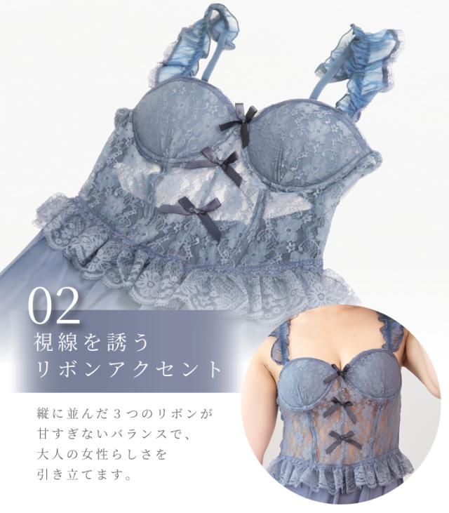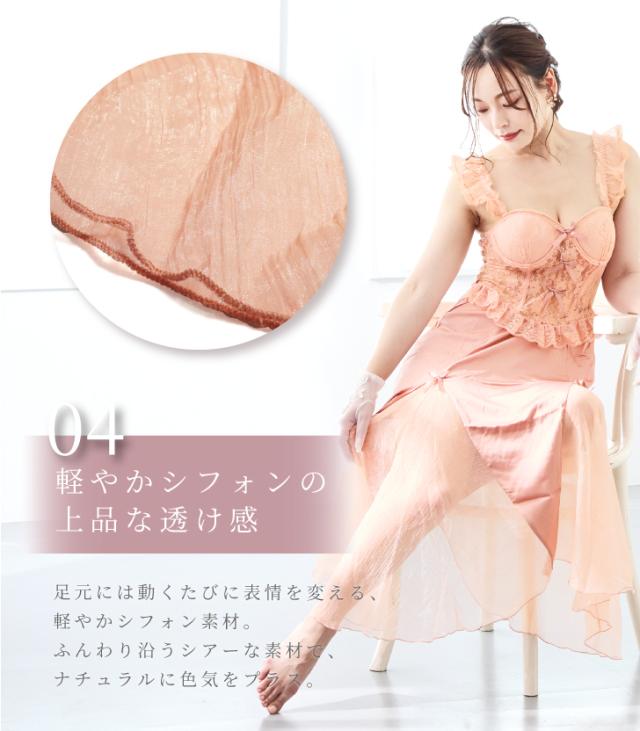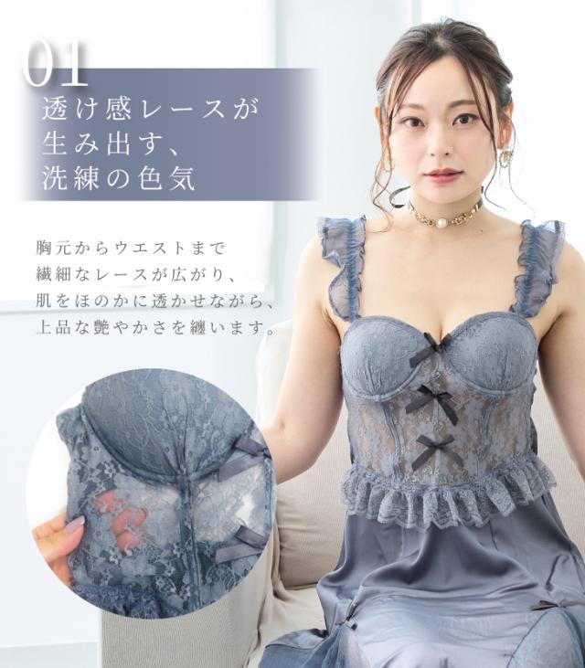 ロング丈 × シアーレース × リボンで魅せる、大人のベビードール。繊細なフラワーレースは素肌がほんのり透ける上品な印象。胸元と足部分にあしらわれたリボンが、視線を誘うアクセントに◎レース、サテン、シフォンのコントラストが、特別な日にも映える一着です。大人の色気を感じさせるセクシーなカラーから、ほんのりとした甘さのあるくすみカラーまで5色展開。