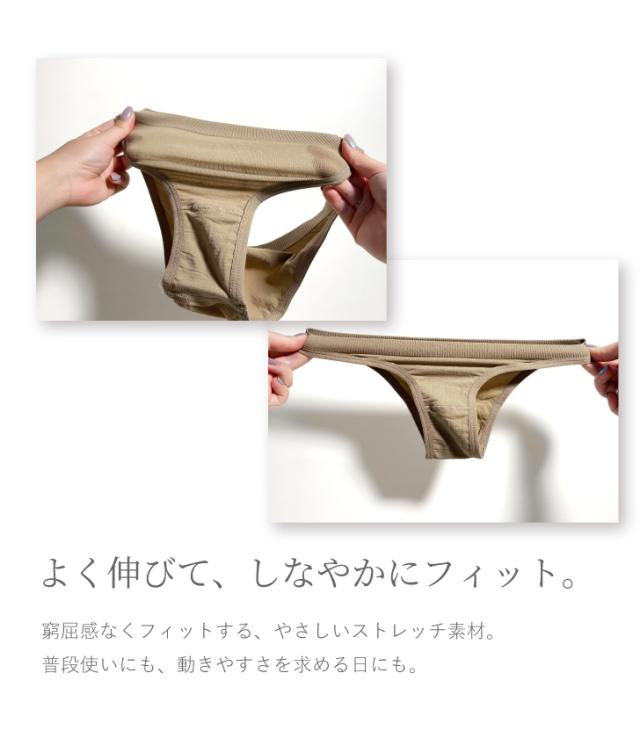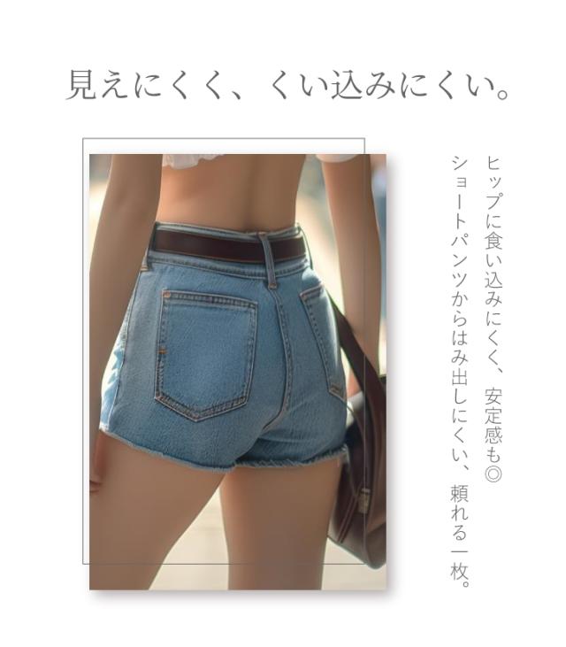 ヒップをほどよくカバーするハーフバックデザイン。素肌にすっと馴染むやわらかな質感で、普段使いもしやすいのが嬉しいポイント。窮屈感なくフィットするやさしいストレッチ素材で動きやすさも◎服に響きにくいのでタイトな服を着るときにも活躍。