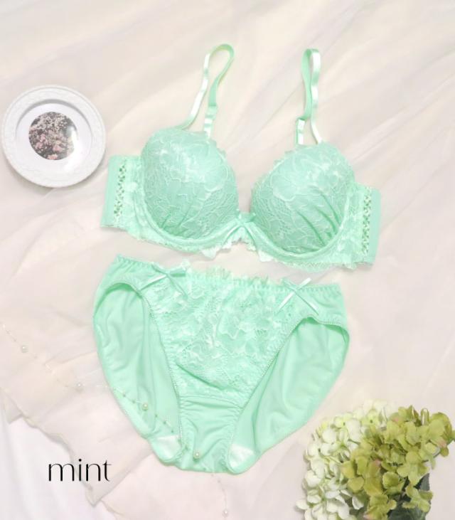 大人カワイイを叶える、総レース仕立てのブラ&ショーツセット。繊細なフラワーレースが上品で華やかな印象を演出します。脇高仕様で気になる脇肉をしっかりとキャッチ◎。サイドにあしらわれたレースアップが大人の甘さをさりげなく演出。フロントのリボンが可愛らしさのアクセントに。清潔感あふれるホワイトと、軽やかで爽やかなミントの2色展開♪