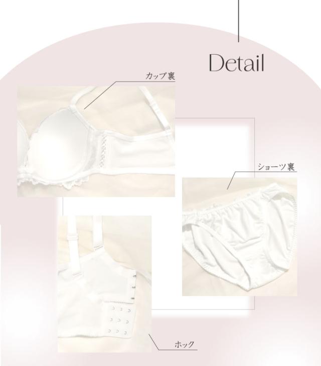大人カワイイを叶える、総レース仕立てのブラ&ショーツセット。繊細なフラワーレースが上品で華やかな印象を演出します。脇高仕様で気になる脇肉をしっかりとキャッチ◎。サイドにあしらわれたレースアップが大人の甘さをさりげなく演出。フロントのリボンが可愛らしさのアクセントに。清潔感あふれるホワイトと、軽やかで爽やかなミントの2色展開♪
