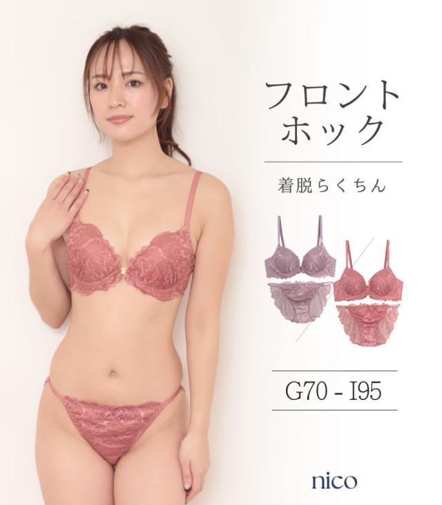 商品名(商品番号):くすみカラー フロントホック 大人かわいい 総レースG70-I95 ブラジャー&ショーツセット (j-3628-ef2)