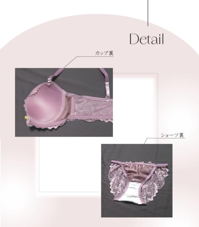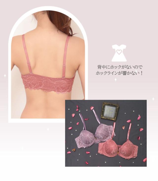 フラワーレースが全体にあしらわれた、上品で大人かわいいランジェリーセット。フラワーの総レースが、やさしく華やかな雰囲気を演出。バックレースのショーツが、後ろ姿まで美しく演出してくれます。フロントホック仕様で、着脱もらくらくです◎毎日をちょっと特別にしてくれる一着です♪カラーはくすみパープルとピンクブラウンの2色展開となっています。