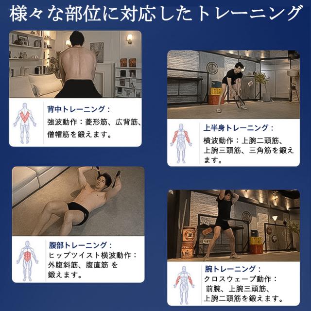 二の腕・背中→腹筋→下半身まで連動刺激。握りやすい非滑りグリップで継続的トレーニング可能。