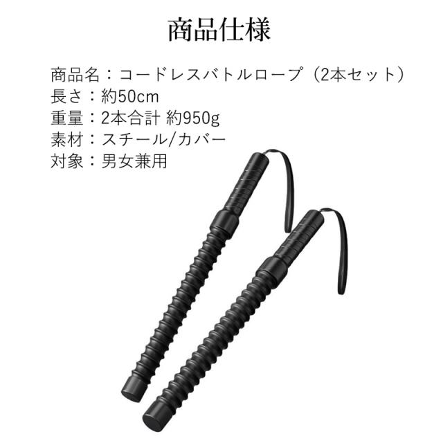 ロープレス バトルロープ 2本セット トレーニングロープ コードレス エクササイズ トレーニング 器具 フィットネス 筋トレ 男女