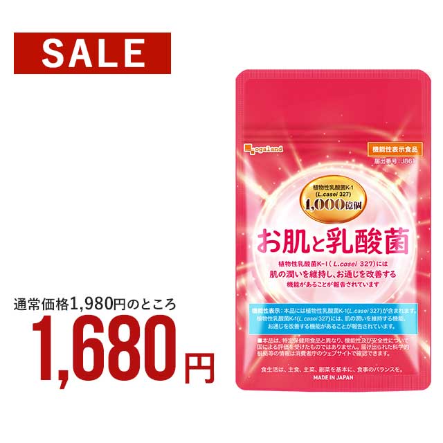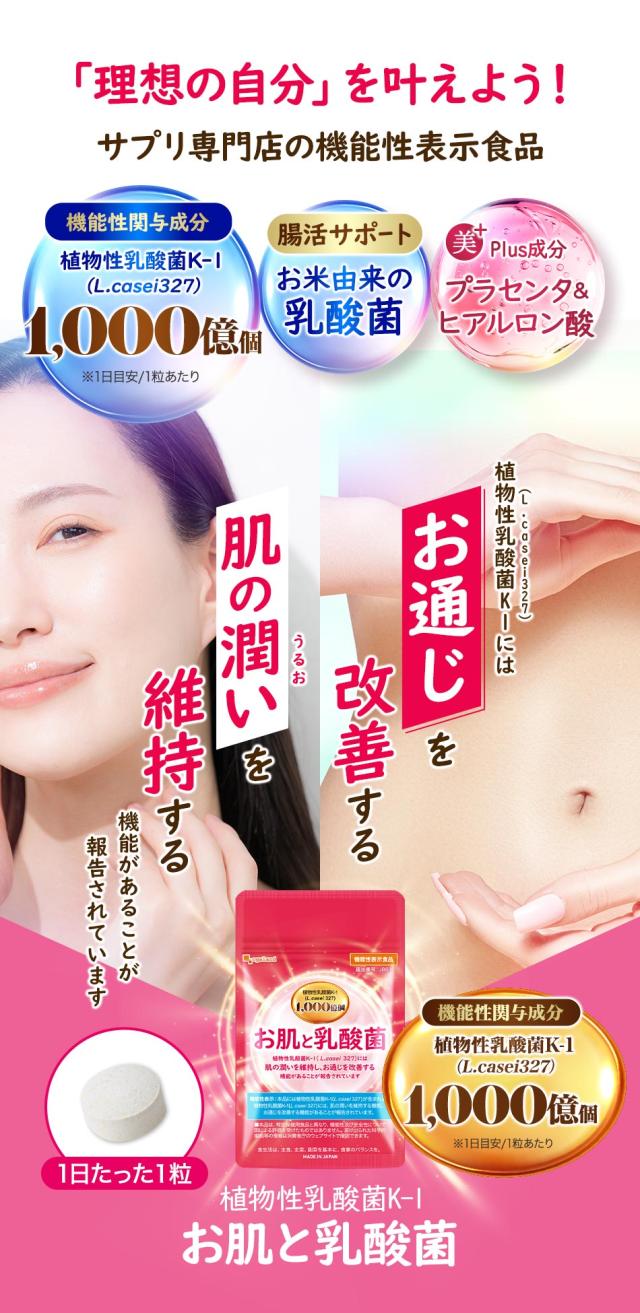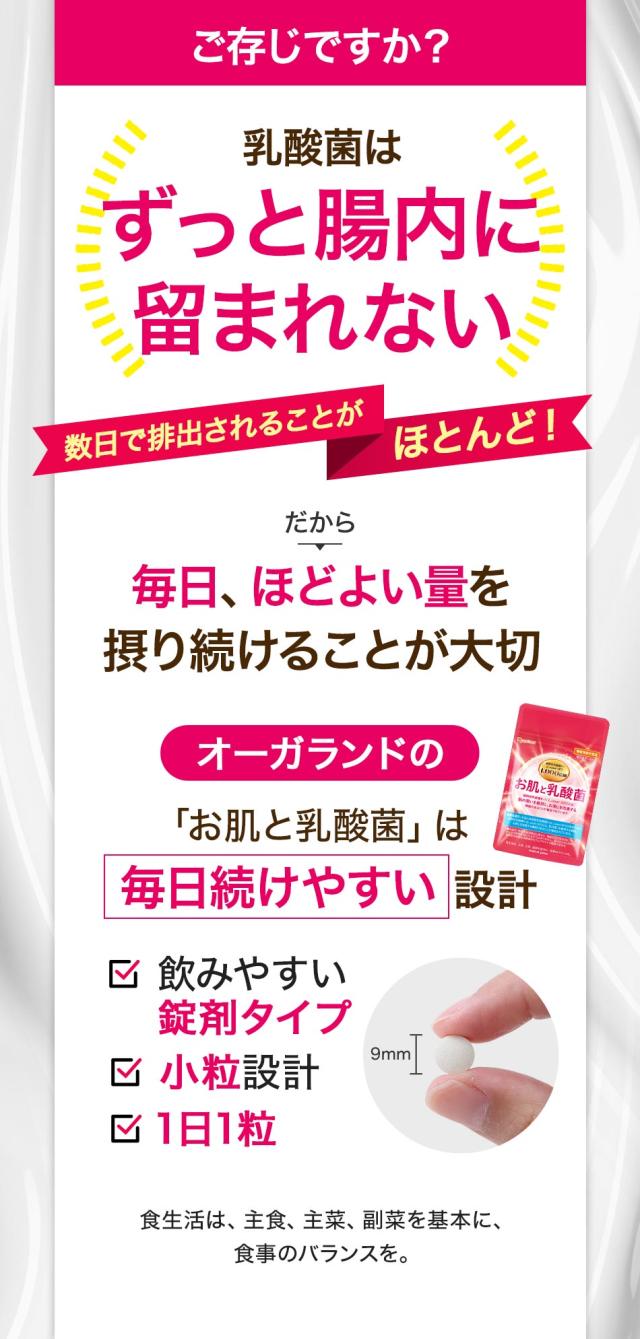 【セール】お肌と乳酸菌(約1ヶ月分) 乳酸菌 サプリ 機能性表示食品 すっきり習慣 でお悩み プラセンタ ヒアルロン酸 ビタミンC ビタミンA ビタミンE 植物性乳酸菌 1粒あたり 1000億個 お米由来 乳酸菌サプリ サプリメント オーガランド 送料無料 国内製造 _JB _JD _1K 32011