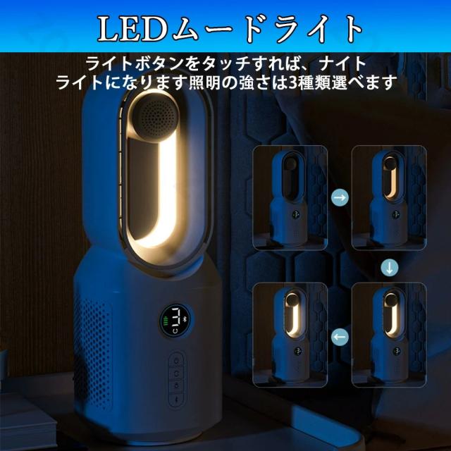 扇風機 羽なし 卓上扇風機 タワーファン 無羽根 軽音 小型 ナイトライト Bluetooth音楽機能 風量3段階 9時間タイマー おしゃれ 空気清浄 サイレントホーム 超静音 たちしファン 106°左右首振 自動首振り 節電 省エネ 夏の日 すずしい 熱中症対策
