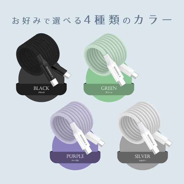 | USB TYPE-C TO USB TYPE-CケーブルはPD/QC急速充電対応 |