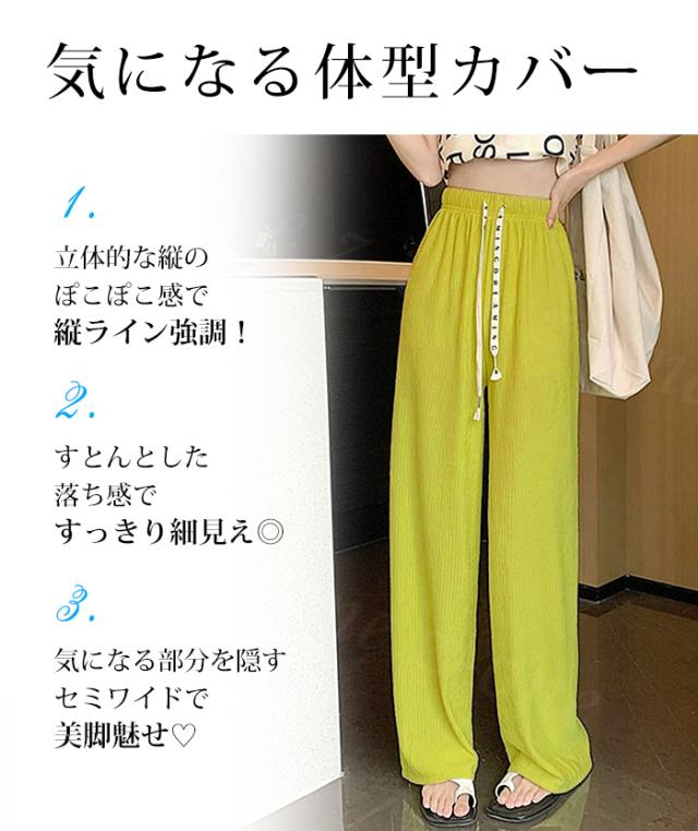<72H限定・1点あたり1,090円!2点同時購入&クーポン利用で>ワイドパンツ レディース プリーツ ロングパンツ ショートパンツ 涼しい ボトムス ゆったり 大きいサイズ ウエストゴム カジュアル 部屋着 ルームウェア ルームパンツ オシャレ ハイウエスト 抜け感 入学式 入園式