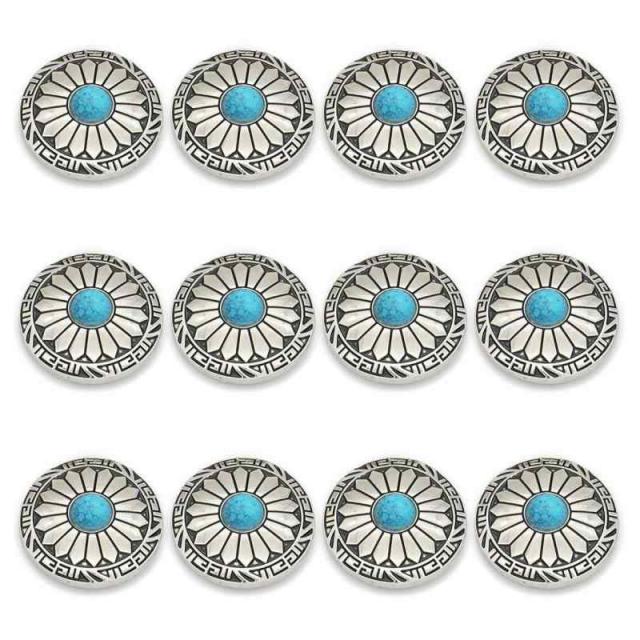 コンチョ ボタン 12個セット ターコイズ 30mm メタルボタン 足つき デージー柄 レザークラフト アクセサリー 手芸 (タイプC)