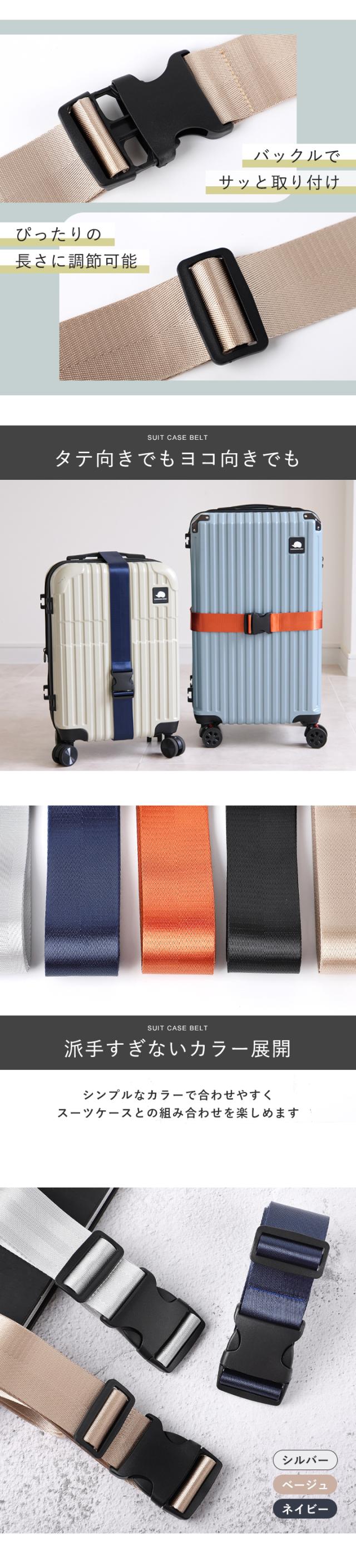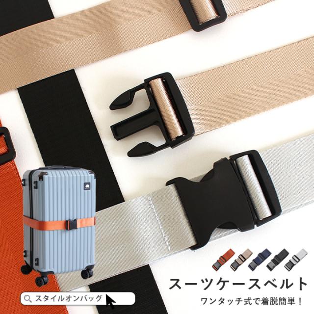 スーツケースベルト! 中の荷物の飛び出し防止・盗難防止、 取り間違いの防止などスーツケース 使用時に気になるあれこれを解決! バックルでカチッと簡単に固定でき、 ベルトの長さは自由に調節が可能◎ シンプルなカラーでどんなスーツケース にも合わせやすく自分用の目印に! |