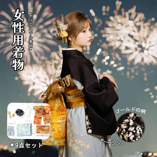 浴衣 着物 和装黒留袖 訪問着 レディース 和装 正装 伝統 黒色 定位置柄 フォーマル 着物 結婚式 式典 花火大会 花火大会 忘年会 新年会 発表会 女性 yukata ゆかた ユカタ 帯 兵児帯 下駄 簡単 簡易 大人 20代 30代 40代 50代