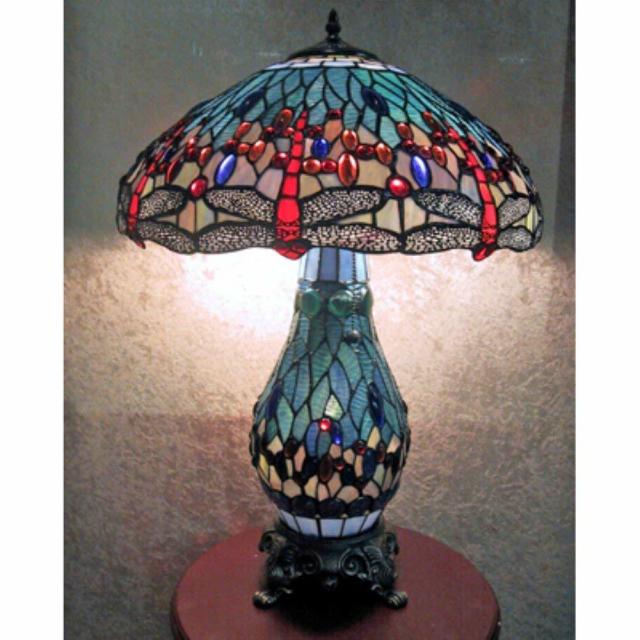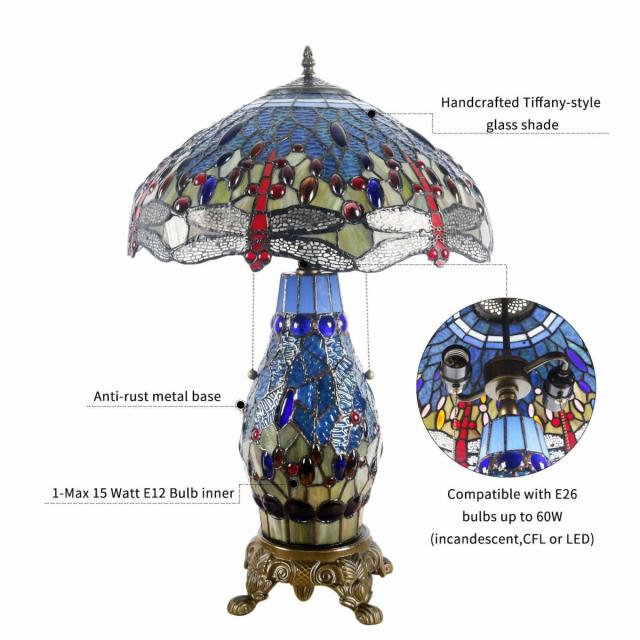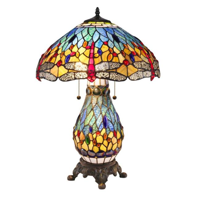 Warehouse of Tiffany's T18275TGRB Dragonfly Tiffany-Style 26-Inch Table Lamp with Lighted Base