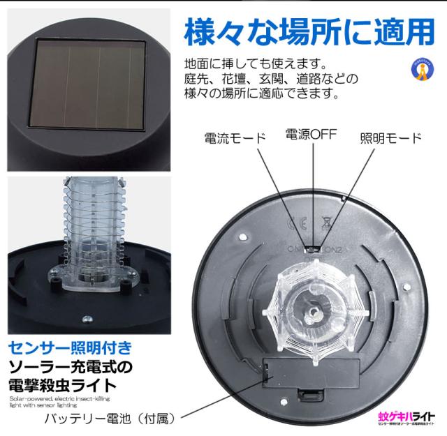 ソーラー充電式の電撃殺虫ライト(センサー照明付き
