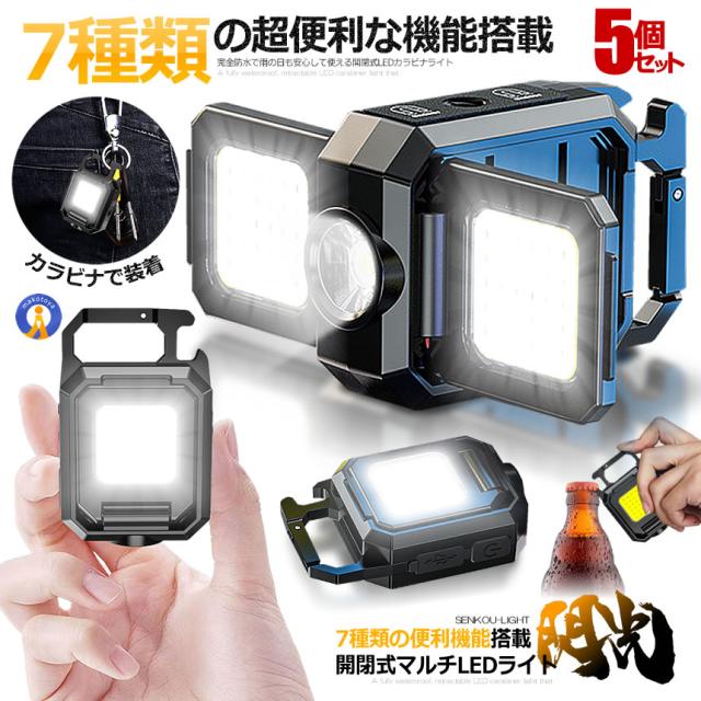 5個セット 閃光 LEDランタン 開閉式 90度 折りたたみ 懐中電灯 多機能 照明 マグネット 5段階のLED調整 TIKRAI s-km2502-42a
