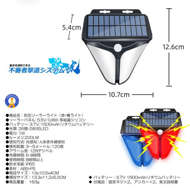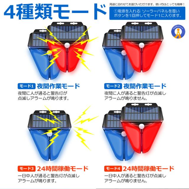 2個セット 防犯ライト 屋外 警報 赤 青 人感センサー センサーライト 大音量 ブザー音 警告音 防犯 LED警告灯 警報機 NSRAI s-kk2411-56a