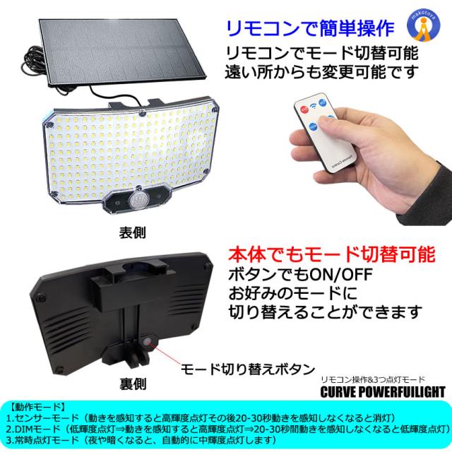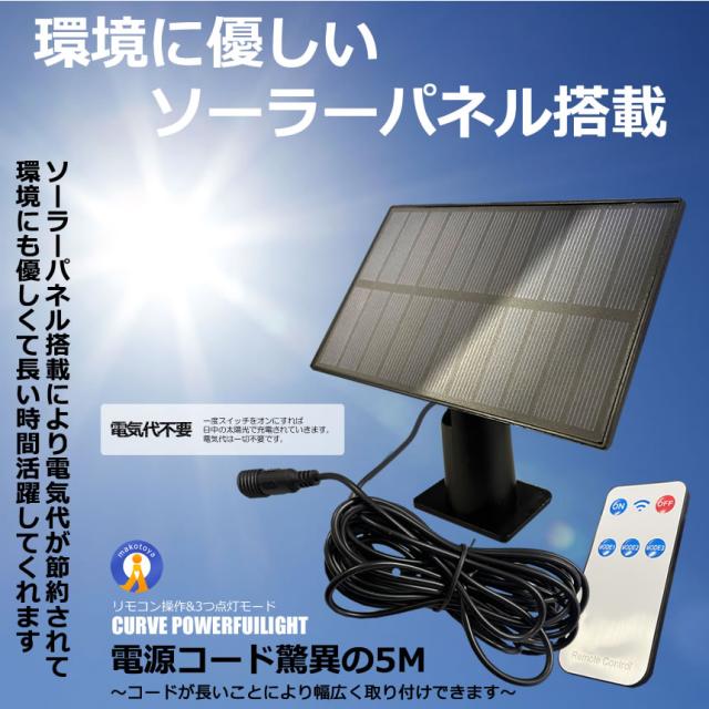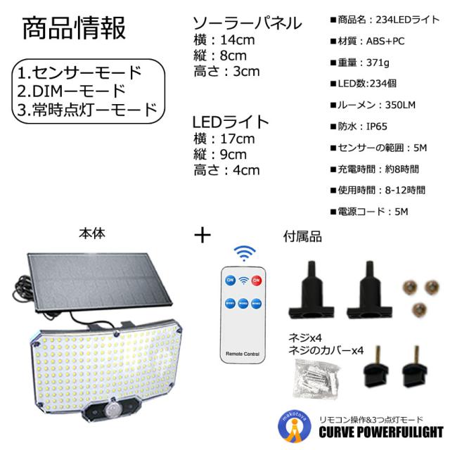 2個セット ソーラーライト LED センサーライト 湾曲 分離型 5mケーブル 太陽光充電 リモコン搭載 高輝度 234LED s-kk2411-55a