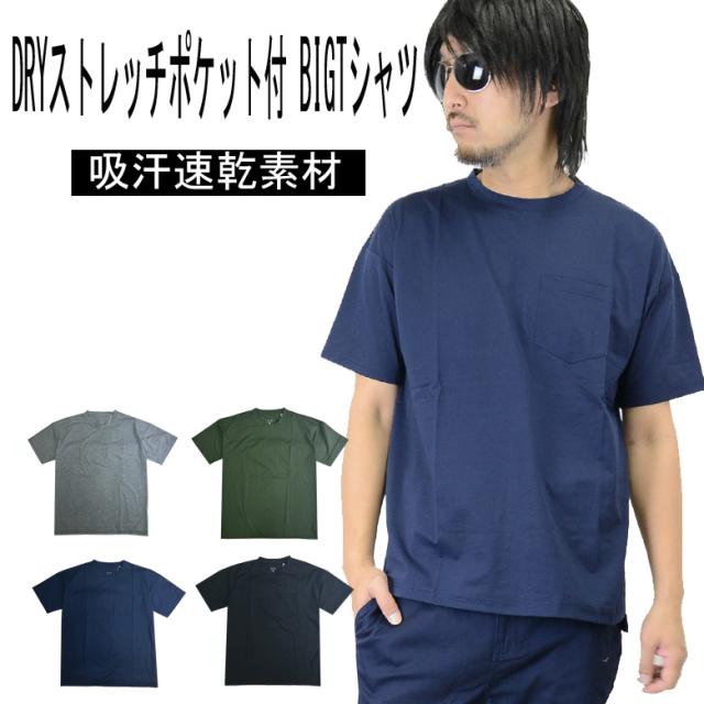 【閉店セール】ビッグシルエット ポケット付き 速乾ビックシルエット半袖Tシャツ 80652 ゆったりサイズは今期トレンド メンズTシャツ Tシャツ 半袖Tシャツ ビッグTシャツ BIG 無地 M L LL 大きいサイズ グレー カーキ ネイビー ブラック