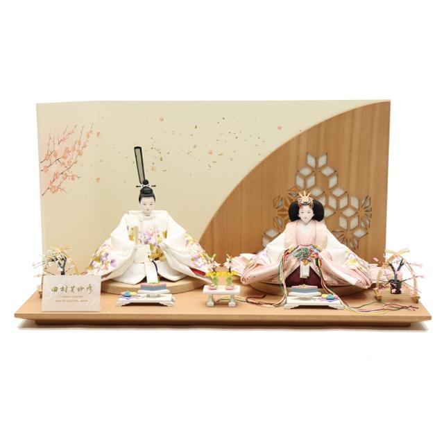 雛人形 親王平飾り 金桜流水に桃と紫桜 田村芙紗彦 京十一番 親王 桜刺繍 金銀箔ちらし照明付屏風 2025-yg011 幅65cm 平飾 2人 ひな人形 お雛様 桃の節句 節句 お祝い インテリア