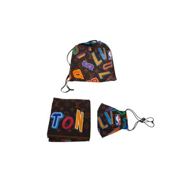ルイ ヴィトン × NBA モノグラム レターズ マスク バンダナスカーフ 巾着 3点セット MP3031 ブラウン LOUIS VUITTON 【中古】
