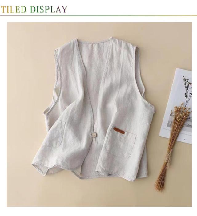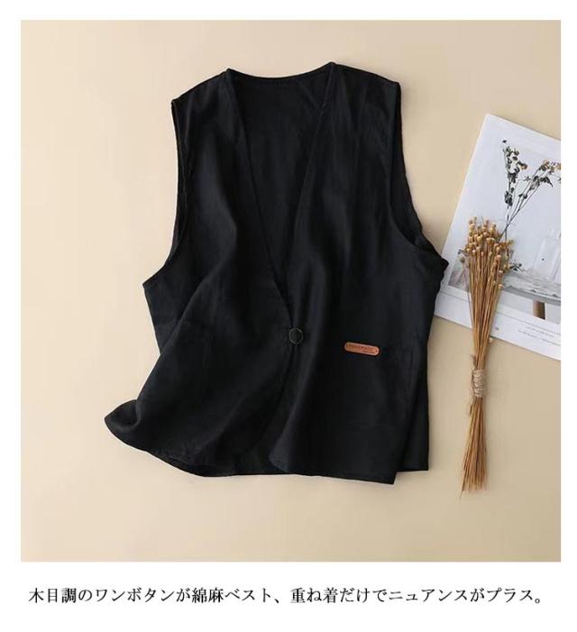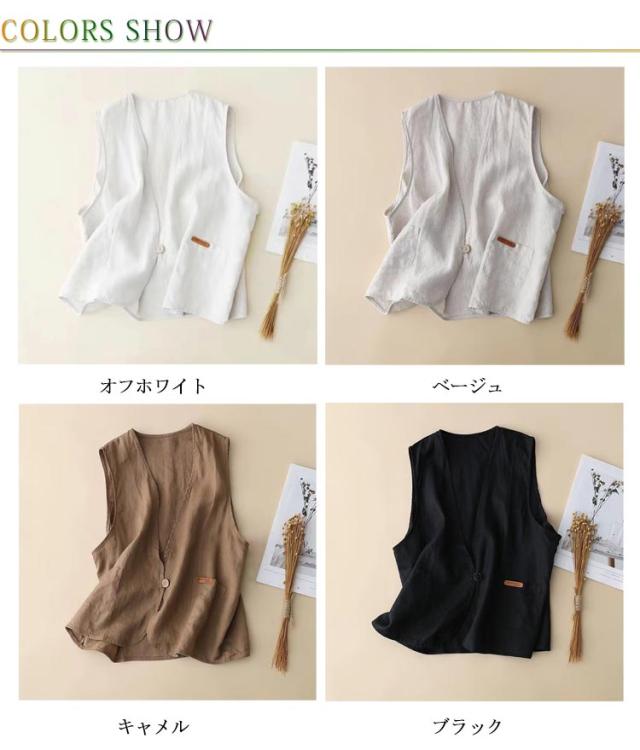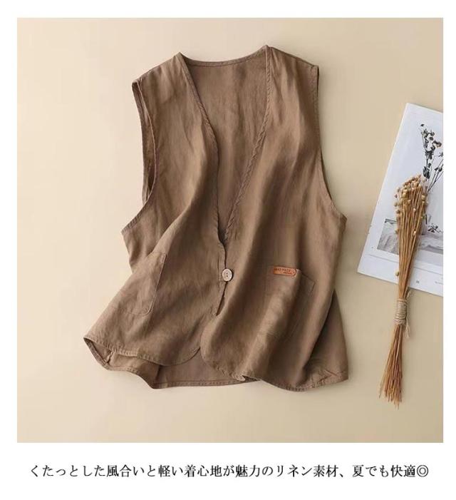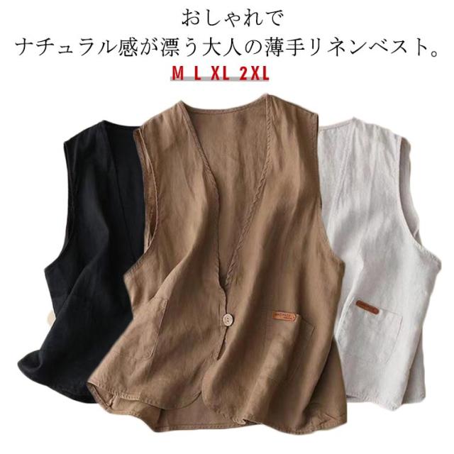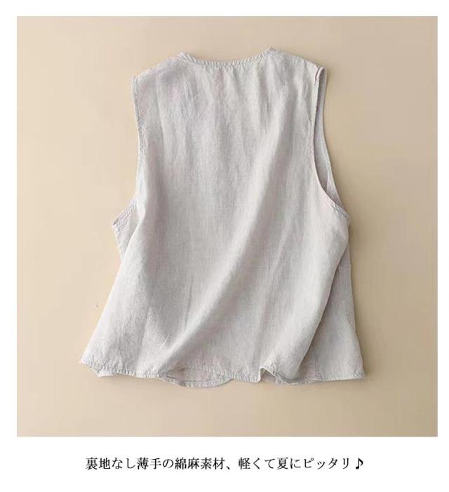 ベスト 春夏 綿麻 リネン サマーベスト レディース ジレベスト 夏ベスト 薄手 前開き ノースリーブ サマージャケット 羽織り Vネック 重ね着 リネンベスト 綿麻ベスト 体型カバー おしゃれ 30代 40代 50代 通勤 OL