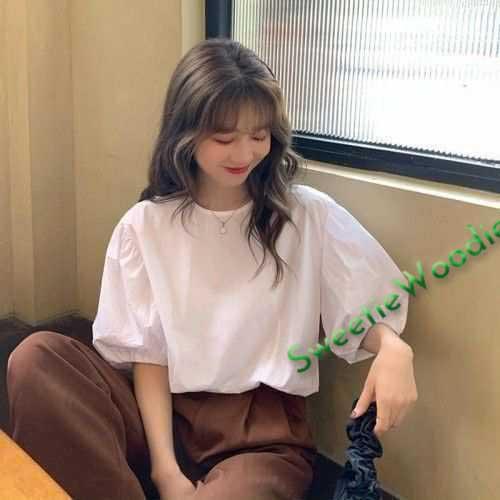 送料無料 バルーンスリーブ パフ袖 バルーン袖 カットソー 半袖 無地 トップス 春 夏 レディース