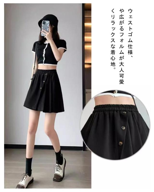 ひんやり スカーチョ サラリとした薄手ストレッチ素材 ガウチョパンツ ショート丈 春 ショートパンツ ハーフパンツ キュロットパンツ ゆったりAライン 接触冷感 キュロットスカート ウエストゴム ゆったりAライン 夏 春夏 レディース 春 フレアパンツ ギフト 20代 30代