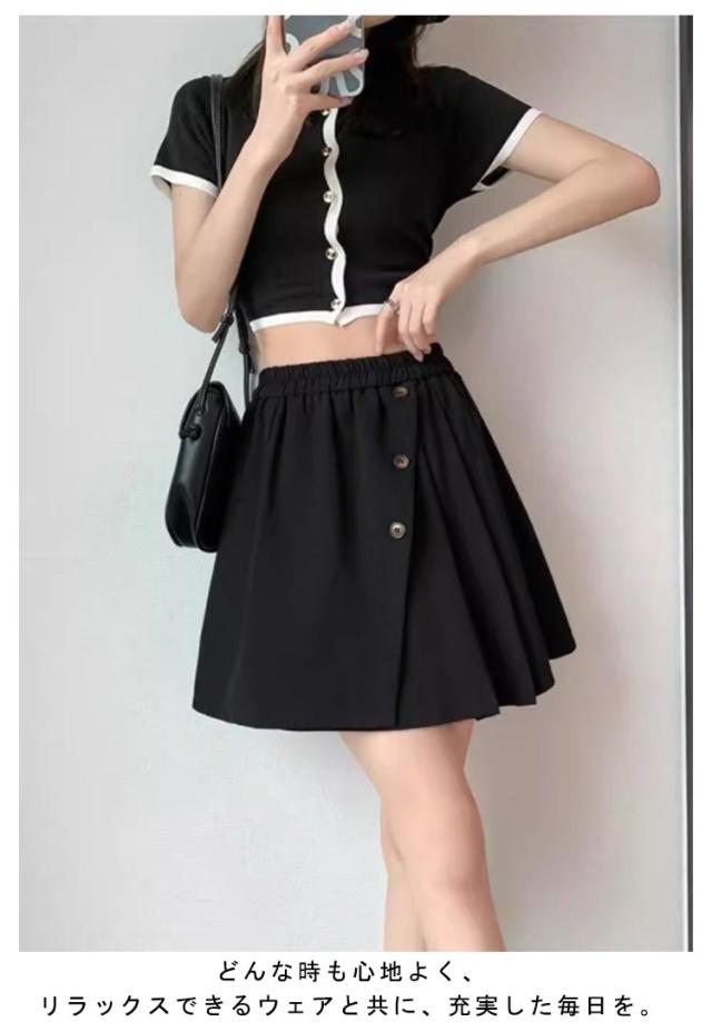 | スカートのように見えるふんわりフレアショートパンツです。 どんな時も心地よく、リラックスできるウェアと共に、充実した毎日を。 ウェストゴム仕様、や広がるフォルムが大人可愛くリラックスな着心地。 計算された丈感とワイドなシルエットが脚長 美脚効果抜群。 | |