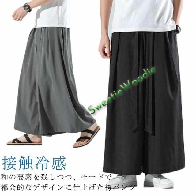 袴パンツ ワイドパンツ メンズ フレアパンツ ロング丈 ガウチョ スカートパンツ スカート風 ロングパンツ ワイド 薄手 春 夏 はかまパンツ 冷感 とろみ 落ち感 サルエルパンツ レディース 大きいサイズ 黒 ブラック グレー 【送料無料】