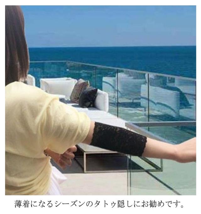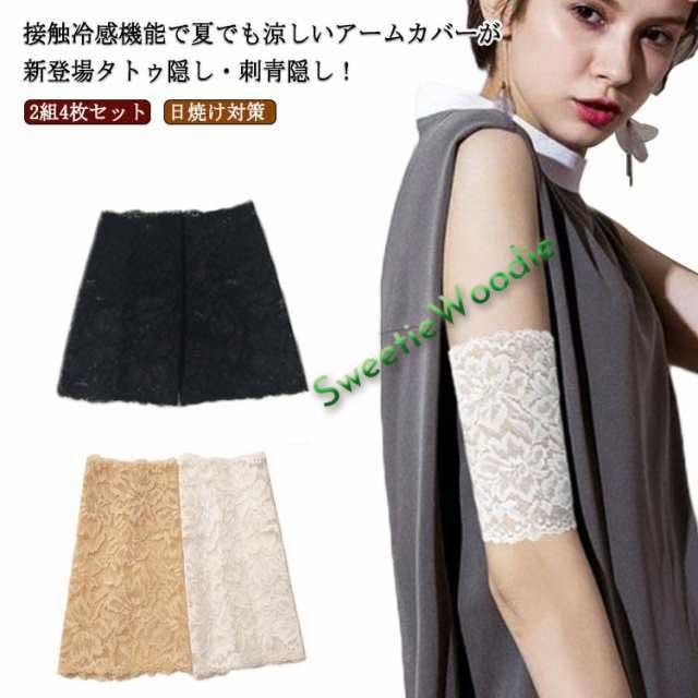 隠すサポーター タトゥー隠し 傷跡隠す 肌色 黒 ブラック レース 2組4枚セット 肌色サポーター 刺青隠し アームガード ショート 接触冷感 日焼け対策 ラッシュガード 通気性 ストレッチ 二の腕サポーター 二の腕カバー tatoo 傷跡かくし 送料無料