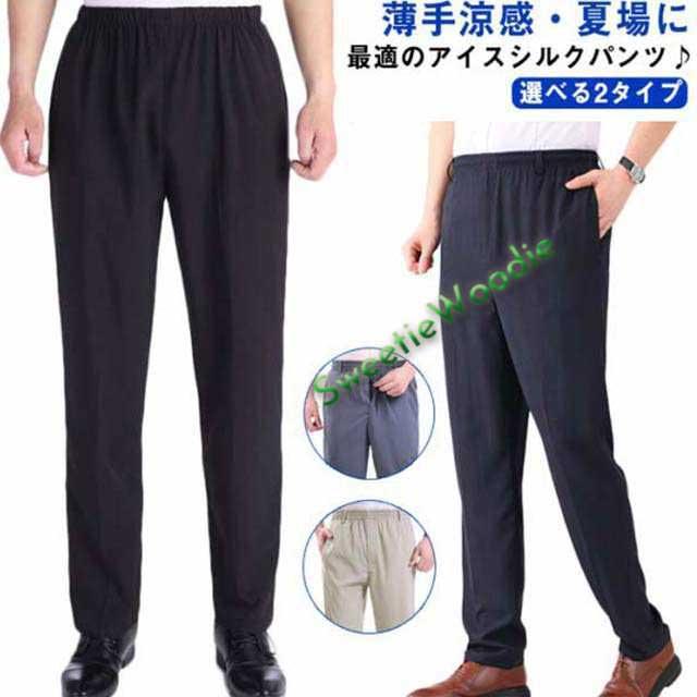 シニアファッション メンズ パンツ アイスシルクパンツ 涼感 涼しい 長ズボン 夏素材 ウェストゴム 高齢者 ズボン 60代 70代 80代 紳士服 お年寄り スラックス ストレッチ 洗える アイスシルクズボン 春夏 男性 総ゴム 父の日 プレゼント 祖父 夏服
