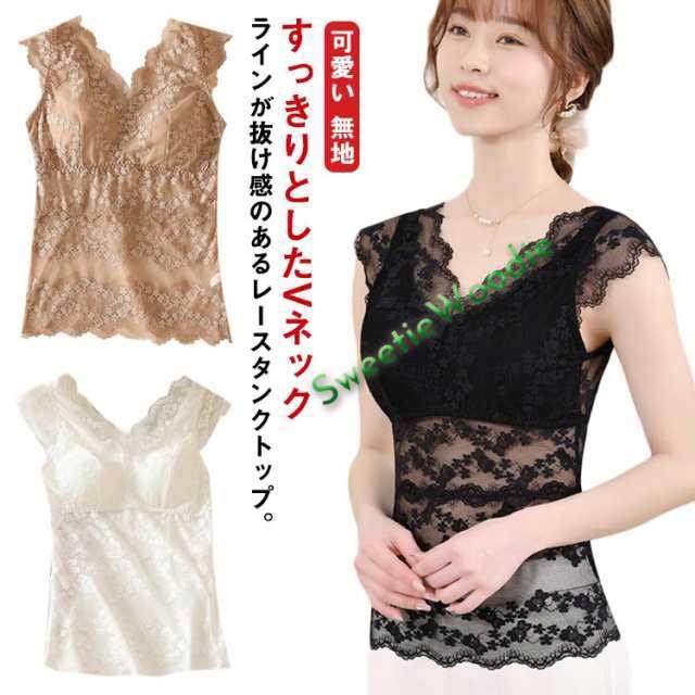 送料無料 タンクトップ 総レース 透かし 肌見せ カップ付きインナー キャミソール ブラ紐隠し インナー ノースリーブ チラ見せ シースルー レース 重ね着 ブラトップ セクシー Vネック 大人 可愛い シンプル 透け感 肌着 シースルー おしゃれ