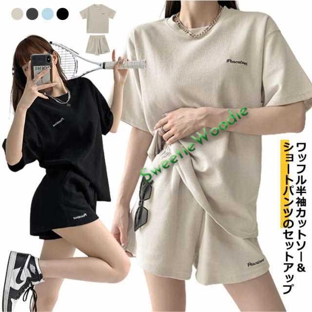 セットアップ レディース 夏 ルームウェア 上下セット 半袖 tシャツ ワッフル サーマル カットソー 刺?入り ゆったり オーバーサイズ ショーツ ハーフパンツ ショートパンツ カジュアル 韓国風 無地 おしゃれ ワンマイルウェア 大きいサイズ
