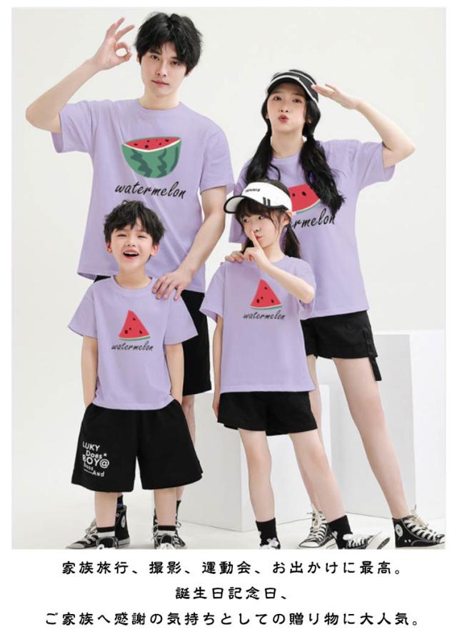 tシャツ 親子 コーデ 夏服 メンズ プレゼント 半袖 tシャツ キッズ T-shirt レディース お揃い 親子ペアルック ママ 夏 男の子 女の子 親子 親子ペアルック 子ども服 パパ 家族 記念日 tシャツ 可愛い スイカ 海 旅行 撮影 出産祝い