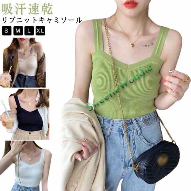 サマーニット レディース キャミ Vネック インナー ストレッチ リブニットキャミソール Vカット 太め肩紐 リブニットキャミソール キャミソール カップなし タンクトップ 夏 春 シンプル 薄手 幅広ストラップ ニットキャミソール 秋