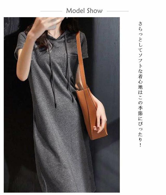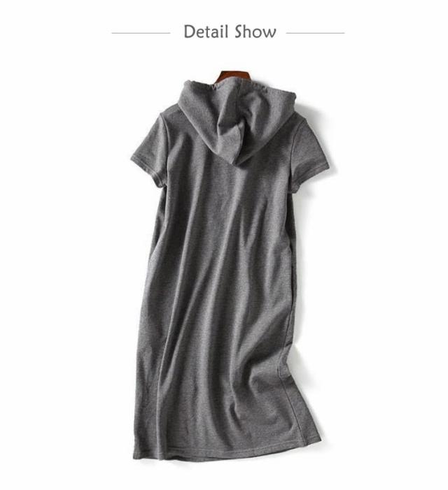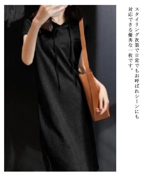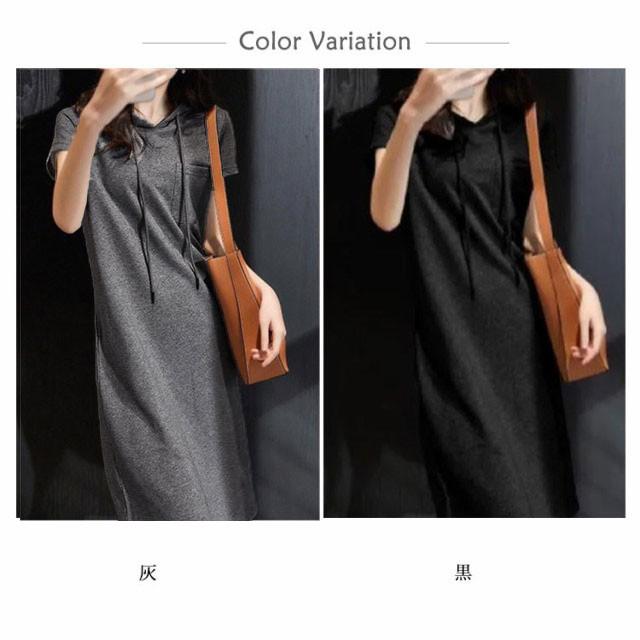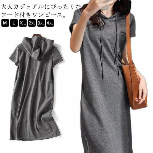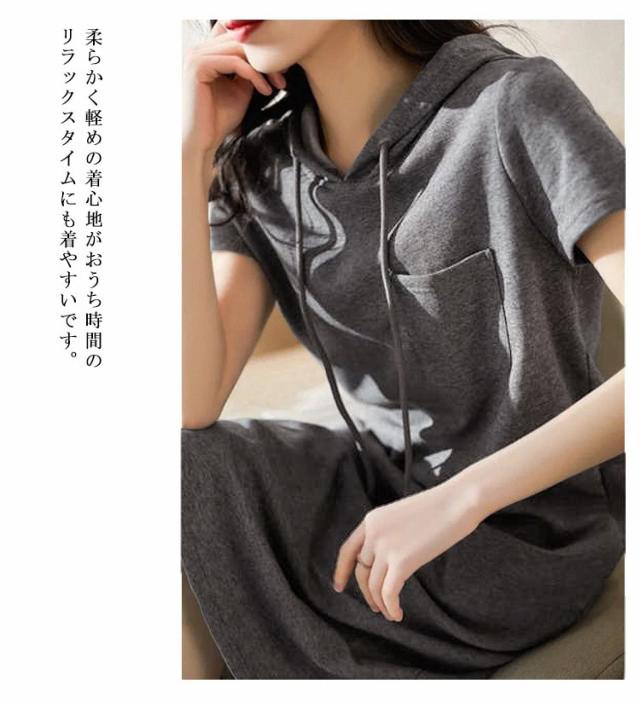 パーカーワンピース 半袖 ロング丈 パーカー フード付き Tシャツワンピース プルオーバー レディース ロングワンピース スリム 大きいサイズ 部屋着 ルームウェア 春夏 ブラック グレー M L XL 2XL 3XL 4XL