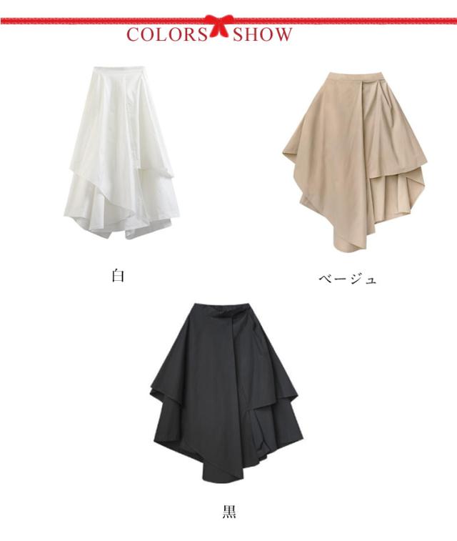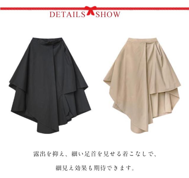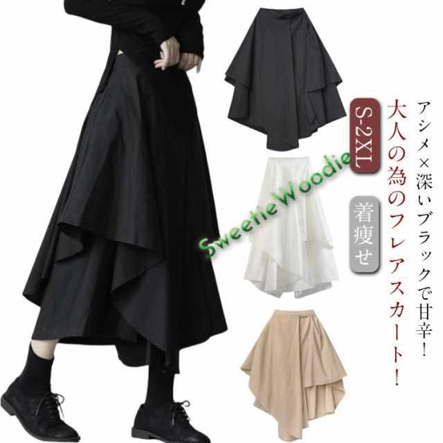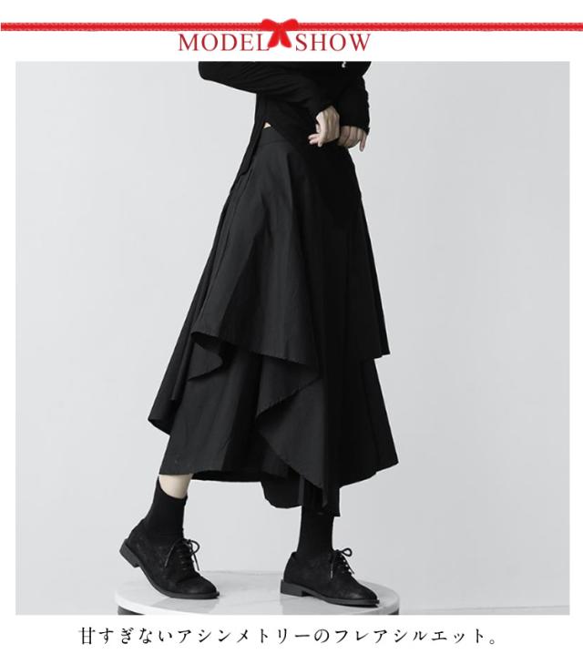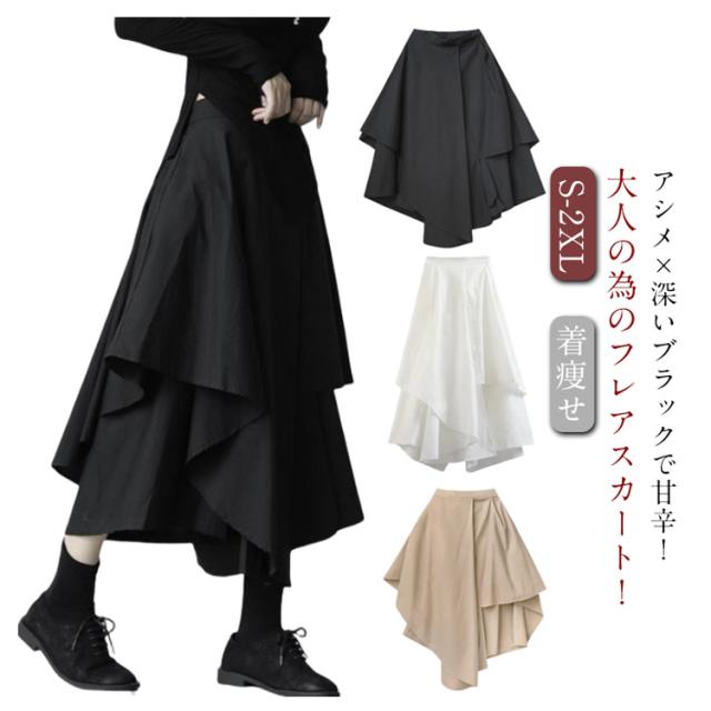 イレギュラー ズボンのスカート レディース ロングスカート シンプル 不規則 アシンメトリー ふんわり ボトムス ティアード Aライン ハイウエスト ゆったり 着痩せ 無地 カジュアル 日常 通勤 春 夏 秋 冬 黒 白 ベージュ