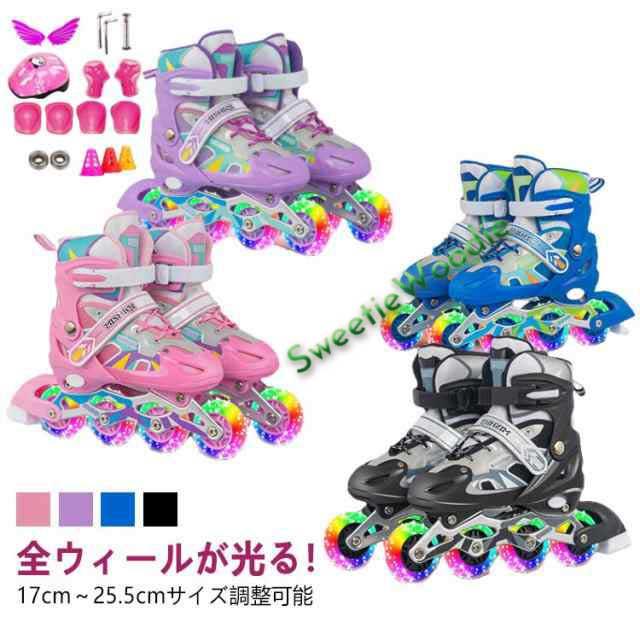 防護セット付き インラインスケート 大人 成人 全ウィールが光る 防護セット付き サイズ調整可能 インラインシューズ ローラースケート 光る輪 ローラーブレード 外遊び クリスマス 誕生日 お子様用 ジュニア 中学生 小学校 大人用 タイヤ光る 女の子