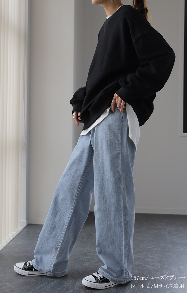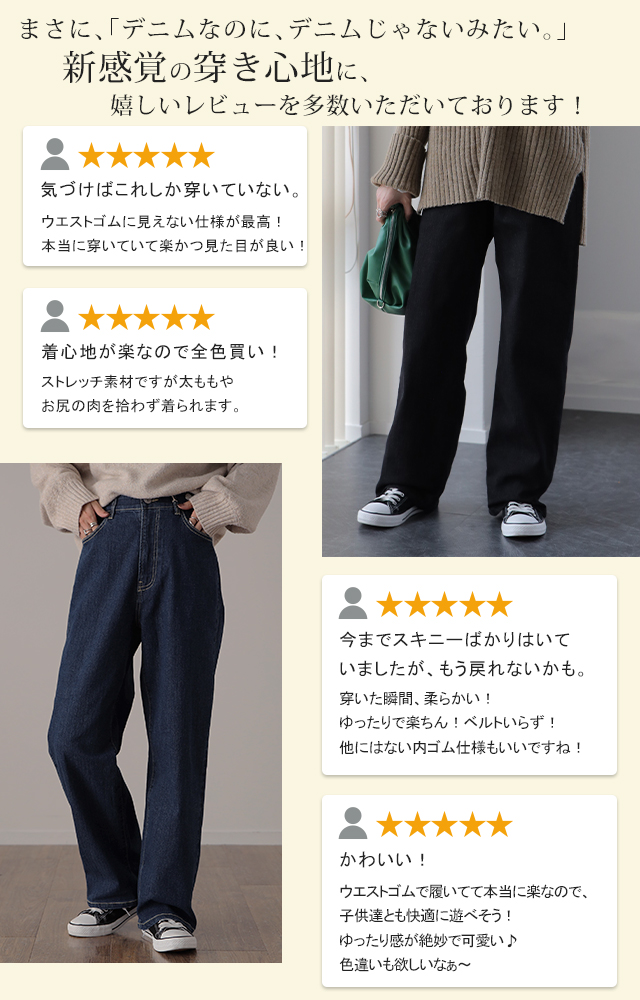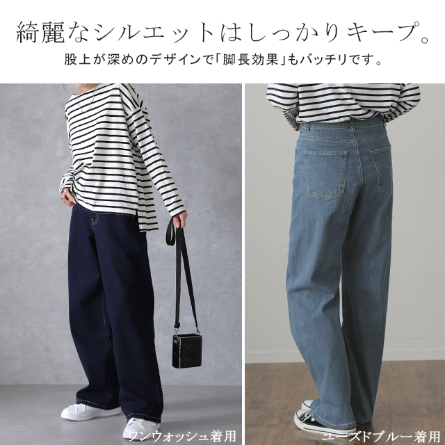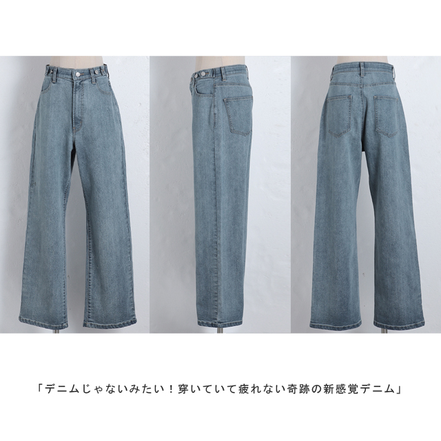 「新 感 覚」穿いていて疲れない デニム 微起毛 パンツ デニムパンツ レディース ワイドパンツ ワイド 大きいサイズ ジーンズ ジーパン ボトム 体型カバー ボトムス ストレート ゆったり ハイウエスト ゴム ストレッチ ハイライズ 春 夏 HUG.U