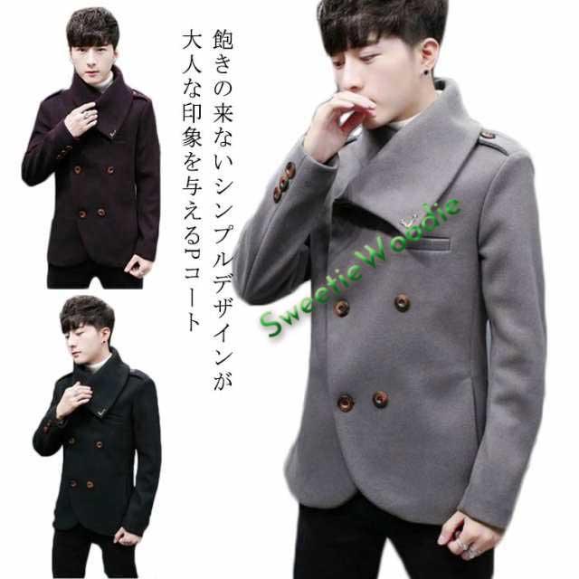 Pコート メンズ ピーコート メルトンコート ショートコート 長袖 ピーコート アウター ジャケット トレンチコート ビッグカラー ハイネック 細身 スリム 防寒 通学 通勤 旅行 ストリート系 サロン系 キレカジ系