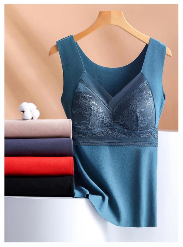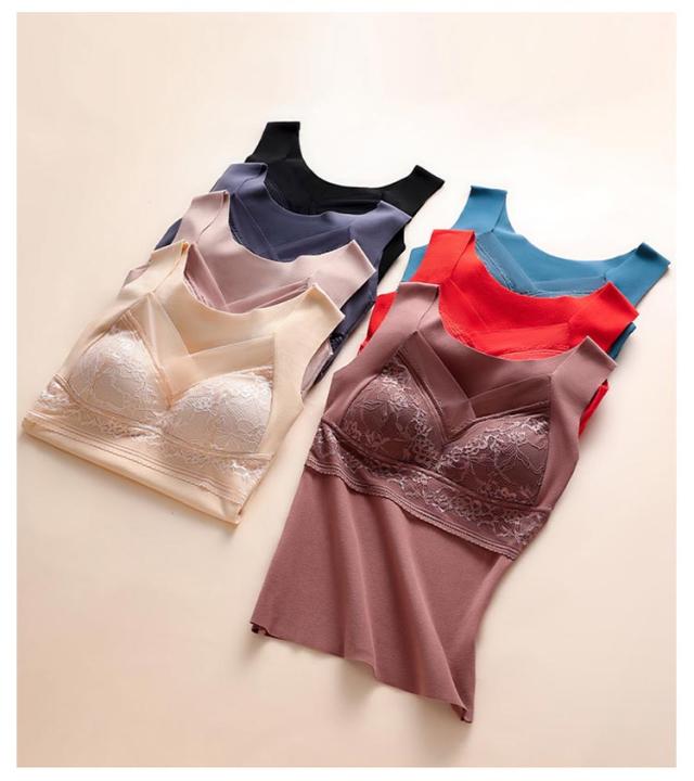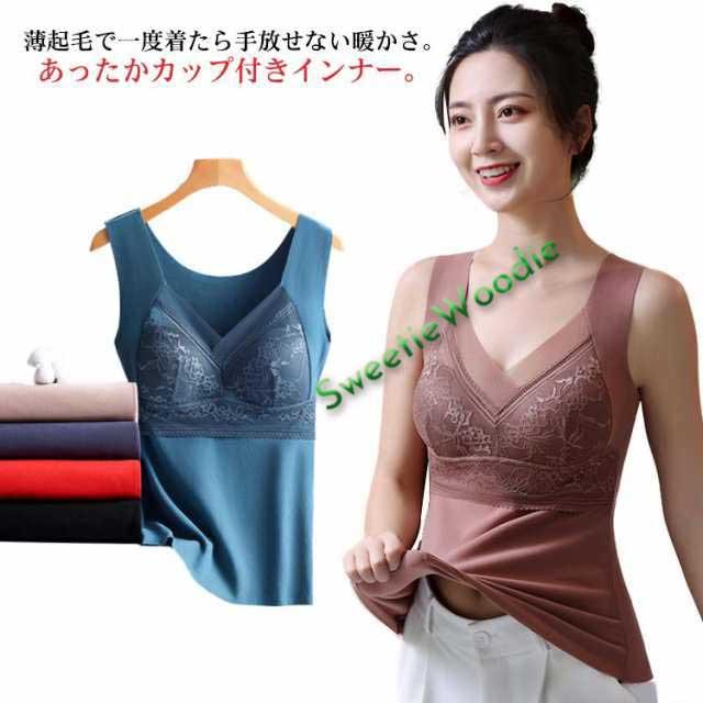 ブラトップ カップ付き タンクトップ 薄起毛 あったか インナー 裏起毛 カップ付きタンクトップ ノンワイヤー ブラジャー カップ付きインナー 大きいサイズ パット付き レース 下着 ブラ ルームウェア ストレッチ ブラ 防寒 保温 女性 補正下着 レディース 肌着 送料無料