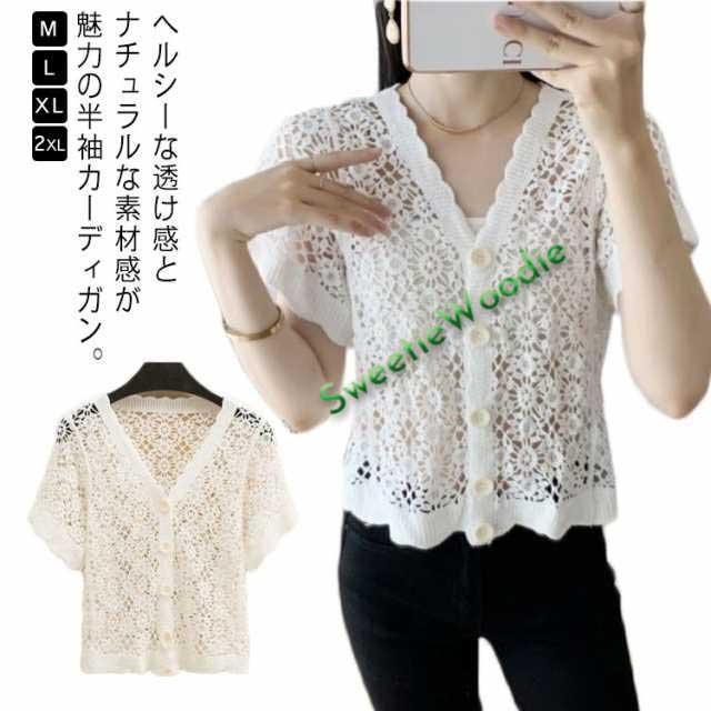 半袖 カーディガン ボレロ ニット 透かし編み ショート丈 レディース トップス サマーニット 半袖カーディガン レース アウター シアーカーディガン サマー 春夏 夏用 薄手 羽織 薄手 ゆったり UVカット結婚式 パーティー 二次会 送料無料